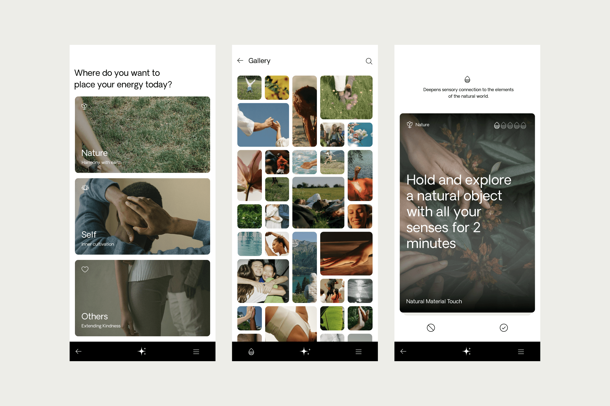 Karma Drop is a mindfulness app designed to support presence and self-awareness through small, intentional actions. Rather than focusing on traditional seated meditation, the experience centres on swipeable daily action cards, each offering a simple prompt for reflection, connection, or everyday awareness. The product reframes mindfulness as something practical and lived, where small actions accumulate over time into a sense of clarity, balance, and calm.